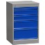 Verktygshurts med 5 lådor. Lådorna har ett integrerat handtag i bockad stålplåt och kullagerexpansioner med 100% utdragbarhet. Centrallåsning i stomme som låser alla lådor. Lådspärr med individuell låsning på varje låda kan lätt monteras. Maximal belastning är 45 kg fördelad vikt. Grålackerad stomme RAL 7037 och blåa lådor RAL 5005.
