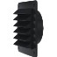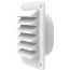 Fyrkantigt ventilgaller med anslutningsstos Ø 98x30. Tillverkat av UV-beständig konstruktionsplast. Med insektsraster och rund stos. Avsett att användas utvändigt på vägg.