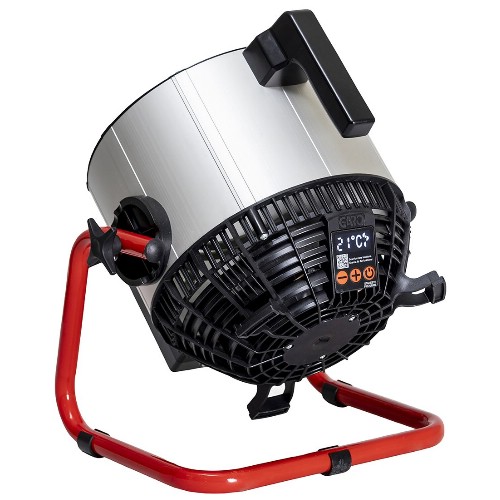 Värmefläkt 230 V. Utvecklad för att tåla miljöer på byggarbetsplatser, industrier och offentliga platser. Rund konstruktion möjliggör hög energieffektivitet och snabb uppvärmning/uttorkning. Display med inbyggd elektronisk termostat som ger jämnare värme, lägre energiförbrukning, samt enkel inställning. Tre effektlägen. Riktbar. Integrerad kabelvinda. Isolerat lyfthandtag. Stapelbar vid förvaring. Överhettningsskydd. 1,8 m kabel (3G1,5 mm²) med stickpropp.