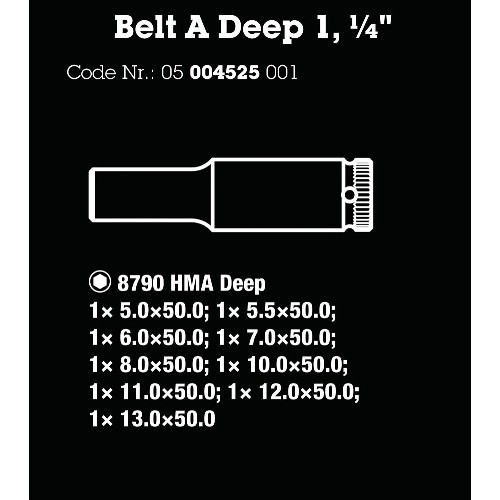 Hylssats 1/4" 6-kant mm lång WERA 8790 HMA Belt A