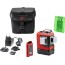 Robost och tålig flerlinjelaser med extra hög synlighet tack vare kraftfulla gröna laserdioder. Projicerar en horisontell och två vertikala 360° klara och tydliga laserlinjer. Räckvidd på upp till 35 m utan mottagare och upp till 70 m med mottagare. Självnivellerande över stort arbetsområde, visuellt larm om lutningen ligger utanför gränsen (± 4°). Laserlinjer med justerbar styrka i tre steg (100%, 75% och 50%). De vertikala laserlinjerna som projiceras mot väggar och tak är lätta att justera efter att lodpunkten ställts in. Den integrerade basen gör att du kan placera de två vertikala laserlinjernas tvärsektion (lodpunkt) där den behövs och sedan justera laserlinjerna med ± 10° samtidigt som lodpunkten är kvar på plats. Damm- och stänkvattenskyddad. 1/4" stativgänga. Drivs av 3,6 V Li-Ion batteri-pack men kan också användas med 3 st 1,5 V AA-batterier eller med nätkabel. Magnetiskt adapter Twist 250, väggfäste UAL 130, mottagare RGR 200 finns som tillbehör.