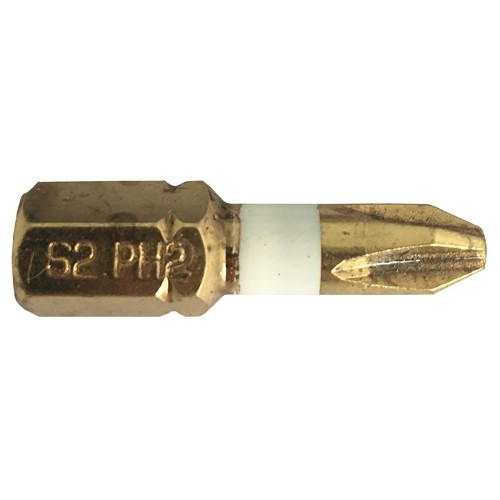 Bits med 1/4" bitsfäste. För Phillip-spår. Material S2. Nedsvarvad hals. Diamantbeläggning för säkert grepp. Längd 25 mm. Färgmarkering för lättare identifikation av storlek. SB-pack.