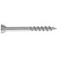 Spånskiveskruv för träregel och golv med vass spets och gängor anpassade för förankring i trä. Gängorna griper omedelbart och drar in skruven i spånskivan, samtidigt som rillorna under huvudet, försänker skruven. För inomhusbruk.