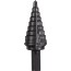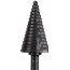 Stegborr med beläggning av aluminiumkromnitrid (AlCrN) som ger lång livslängd. Passar för borrning i stål och rostfritt stål. Rapid Strike Tip ger bättre centrering och snabb borrning utan att behöva slå eller förborra materialet. Speciellt utvecklad spets och steggeometri för problemfri användning, mindre risk för upphakning vid höga hastigheter. 2 symmetriska slipade spiraler för smidig och snabbare borrning. Borrets 3-plansfäste förhindrar stegborren från att glida in eller ur chucken och säkerställer att maximalt vridmoment överförs från maskin till tillbehör. Laseretsad storleksguide för maximal hållbarhet.