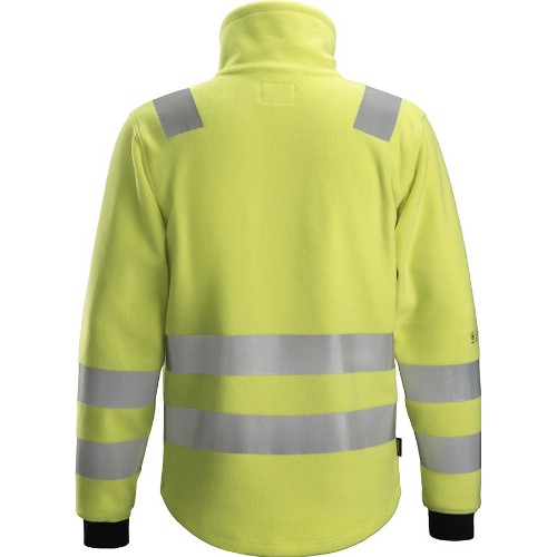 Fleecejacka med certifierat skydd mot värme, flammor och ljusbågar samt med varselegenskaper av klass 3. Antistatiska egenskaper, snabbtorkande tyg. Bröstficka med blixtlås och ID-korthållare. Tvätt 60°C.