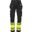 Slitstark hantverkarbyxa i varselutförande. Stretchpartier på insida av lår, gren samt baksida knä. Knäskyddsfickor nåbara från insidan och justerbara i två nivåer. Polyamidförstärkningar på knä, verktygsfickor och benslut. Segmenterade reflexer. Benfickor till bl.a. mobil, pennor, verktyg och tumstock. Bitsficka med dragkedja på hängfickor. Förböjda knän för ökad komfort. D-ring för applicering av ID-bricka. YKK-dragkedja. Nedläggningsbart benavslut, vilket innebär att man kan lägga ned byxan 5 cm med en enkel sprättning. Tvätt 40°C.