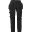 Slitstark hantverksbyxa i dammodell med stora partier av 4-vägsstretch framtill, baktill och på benen, vilket optimerar rörelsefriheten. Tillverkad av bekväm bomull och återvunnen polyester, med praktiska ficklösningar och Cordura-förstärkningar. 2 löst hängande Cordura-förstärkta spikfickor, den ena med 3 mindre fickor och verktygshällor, den andra med två fickor varav en med dragkedja. D-ring under spikficka. 2 framfickor. 2 sidfickor, den ena med dragkedja. 2 Cordura-förstärkta bakfickor med lös botten. Cordura-förstärkt tumstocksficka med verktygsficka, pennficka samt knapp och hälla för kniv. Rymlig benficka med tryckknapp, vattentät ficka med dragkedja, telefonficka och extra ficka med D-ring för id-kortshållare. Hammarhank. Dubbel förstärkt grensöm. Knäfickor i Cordura med öppning utifrån, uppifrån. Knäskydden i knäfickorna kan höjdjusteras. Cordura-förstärkta benslut, reglerbara med tryckknappar. Reflexdetaljer på bakbenen. Tvätt 60°C.