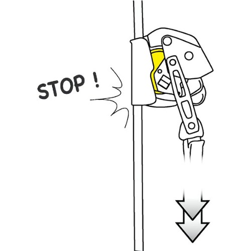 Mobil fallbroms för rep, med låsfunktion. Fallskyddsanordning som underlättar vid repklättring. Stoppar fall, glidningar och okontrollerade nedfirningar. Fungerar på både vertikala och vinklade rep. Låser på repet, även om man griper tag i det under fallet. Lätt att montera och ta bort var som helst på repet. Rör sig automatiskt uppåt och nedåt längs repet utan manuell justering. Vid normal användning rör sig enheten fritt längs repet och följer användarens rörelser utan att kräva manuellt ingripande. I händelse av en plötslig belastning eller acceleration låser den fast sig i repet och stoppar användaren. Den integrerade låsfunktionen gör det möjligt att låsa fast enheten för att minska fallavståndet, vid stark vind förhindrar funktionen också att repet blåser uppåt. Anslutningsarmen gör systemet droppsäkert när användaren passerar mellan ankare. Asap Lock används tillsammans med falldämpare Asap'Sorber eller Asap'Sorber Axess för att arbeta på avstånd från repet. Asap'Sorber Axess används vid laster upp till 250 kg i räddningssituationer med två personer. Tillverkad av aluminium och rostfritt stål.