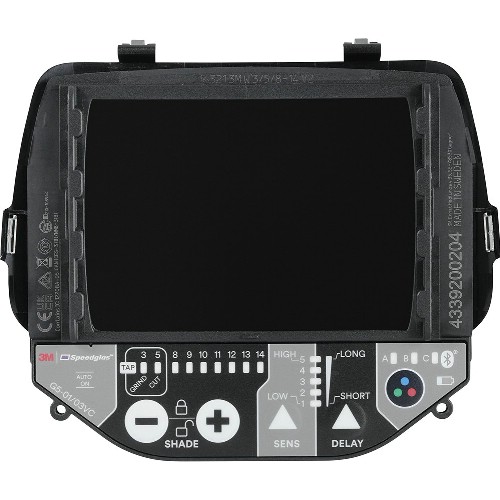 Automatiskt nedbländande svetsglas med siktyta på 109x73 mm. Passar för MMAW-, MIG/MAG- och TIG-svetsning samt plasmaskärning och slip- och skärläge. Avancerad elektronik med fyra bågsensorer, svetsglaset slår om på ett snabbt tillförlitligt sätt. Omslagstid från ljus till mörker på 0,1 ms. Variabel täthetsgrad 8-14, ljus täthetsgrad 3 och slip- och skärläge med täthetsgrad 5. Natural Colour-teknik, färger blir klarare och mer verklighetstrogna. Variabel färgteknologi med tre val av färger i mörkt läge. UV/IR-skydd i fast läge med täthetsgrad 14. Tap-funktion för att aktivera slip- eller skärläge. Lättanvänd kontrollpanel, där man enkelt sköter funktionerna. Svetsglaset är också utrustat med Bluetooth-funktion, parkopplas enkelt till smarttelefon. Med appen 3M Connected Equipment finns det tillgång till ytterligare funktioner som att göra inställningar i svetsglaset, programmera minneslägen för olika svetsinställningar, få tillgång till användarmanual etc. Drivs av 1 st 3 V Litiumbatterier (CR2450).