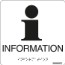 Skylt i hårdplast med 98% återvunnet material, med upphöjd punktskrift (taktil). Hög färgkontrast mellan bakgrund och text/punktskrift/symbol. Skylten är anpassad för utrymmen och lokaler där både seende och synskadade/synnedsatta vistas. Symbol för informationsplats, text "information" samt punktskrift.