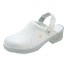 Yrkestoffel av träskotyp. Ovandelen av mikrofiber med god tålighet för ofta upprepad tvättning. Elastisk resår på den vändbara bakremmen förbättrar passformen. Polyuretansula med bra grepp, som tål olja och olika kemikalier.