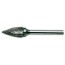 Roterande hårdmetallfil för stål, härdat stål, rostfritt stål, gjutjärn, titan, nickel och koppar. Spetsig form.