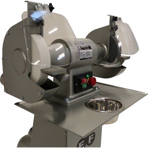 Kraftfull pelarslipmaskin med 3-fas 1100 W motor med varvtal på 2800 varv/min. Pelare med inbyggt utsug. Avsedd för tyngre sliparbeten inom hantverk, verkstad och industri. Slipskivor på både höger och vänster sida. Med motorbroms och kontinuerlig drift. Försedd med nollspänningsutlösning. Motor och övrig elektrisk utrustning i kapslingsklass IP54. Levereras komplett med pelare inkl utsug, bord och vattenkopp, 2 st slipskivor (korn 30/60), ställbara slipstöd, skyddsglas, sprängskydd och flänsbrickor.